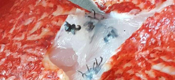 照片中显示,鱼肉中藏有几只黑色的寄生虫,他表示,「深海鱼的鱼肉有寄生虫,你们还敢吃生鱼片或买回家煮吗?夏天到了,鱼体外观鱼贩都看得出来,但请找有良心的鱼贩购买,才会吃得安心」。