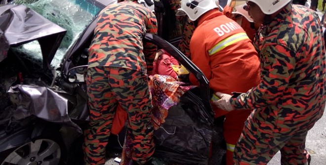 据悉﹐丰田四驱车当时是从斯里阿曼方向朝木中前进﹐在抵达事发现场时与普腾轿车发生迎撞﹐导致普腾轿车严重毁坏﹐前乘客座也因此受困﹐司机及其余乘客皆只轻伤兼无受困。