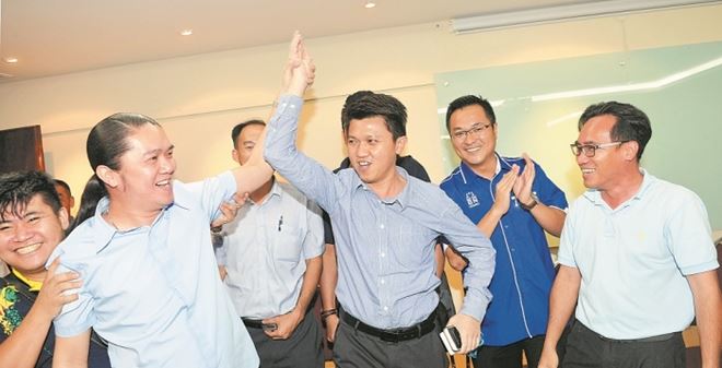 今天近百名马青团员,出席这场力挺总团长张盛闻的记者会,並拉布条展示支持张盛闻的行动。当梁捷顺在发表有关马青坚决要求农长道歉的立场时,他们便发出欢呼声,以示支持。
