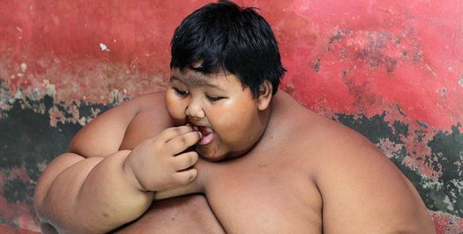 一名年仅10岁的印尼男童Arya Permana,因为人生就是吃饱睡、睡饱吃,每天吃5餐,吃完就是睡觉,结果短短10年让自己的体重爆肥到192公斤,成为全世界最胖的男童。
