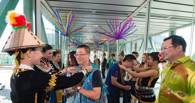 今日所载来的首批乘客与要员,包括昆明风和国际旅行社有限公司副总经理张新悦,以及云南省逾60家旅行社代表,全机乘客170余人,获得沙巴旅游局和大马机场公司官员,在沙巴文化表演团陪同下热情迎迓。