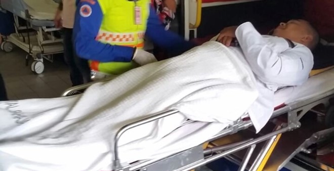 伤者在事发后由民防局救护车载送医院治疗﹐并证实右腿蒙受骨折﹐但无生命危险。