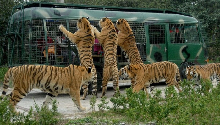 據悉,出事的是一家4口,當中包括3名大人、1名小童,昨天下午3時許,他們到八達嶺野生動物園自駕游,駛至猛獸區的東北虎園時,一對年輕男女在車內發生口 角,女子突然下車去拉男司機的車門,結果被躥出來的老虎叼走。另一名年長女子見狀,隨即下車企圖營救,怎料被另外一隻躲藏在附近的老虎當場咬死並拖走。