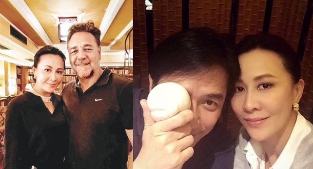 (香港11日讯)凭电影《帝国骄雄》(Gladiator)勇夺奥斯卡影帝殊荣的好莱坞男星罗素高尔秘密赴港,9日晚获名人邓永鏘邀作客,与影后刘嘉玲于饭局大谈电影兼交流心得。席间刘嘉玲与罗素高尔合照並將相片上载到社交网站,留言「2 beautiful minds(两个美丽脑袋)」。据知,罗素对刘嘉玲的见解有极高评价,即场邀她合作明年初开拍的一部大型好莱坞警匪片。