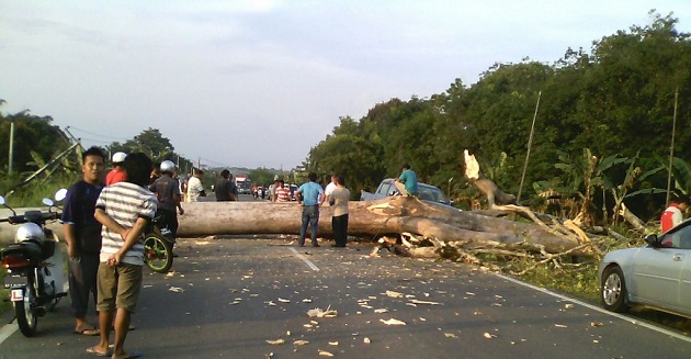 (保佛十一日讯)昨日下午,吧佛公路因一棵倒下的大树横拦在路上而造成交通全面中断了一小时半,导致路上车辆大排长龙。