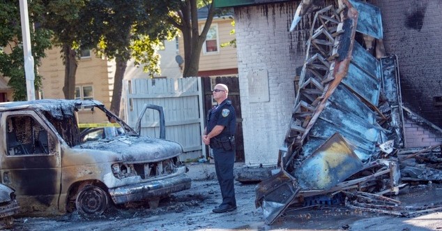 虽然密尔沃基週日日间恢復平静,但州长沃克为防再有暴力示威,启动国民警卫军协助警员。
