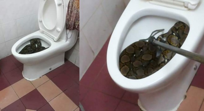 这家人的11岁男孩週一(15日)晚上约8时,准备上厕所小便,发现有蟒蛇藏在马桶。