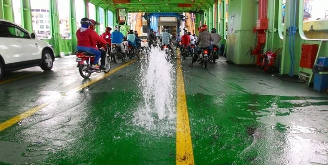 面子书网民「Lim Heng」发帖,指他昨日乘坐渡轮欲从威省前往檳岛,当渡轮接近靠岸时,渡轮上其中一个小角落突然水花四溅。