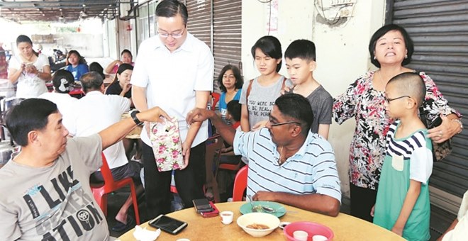班达马兰五月花肉骨茶东主李田强(36岁)今早为这户家人举办肉骨茶义卖会。