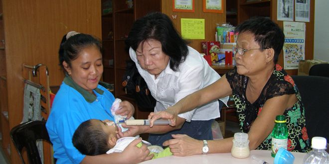 这个3岁大的兔唇女孩,不能正常的饮食。苏茜说,口腔内没有鼻关骨,需要依靠鼻子以流汁进食。喝奶时,要插管进食,每天都是如此这样做,这种心情,只有自己知道,是何等的心酸。