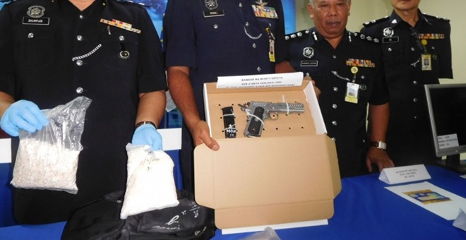 「警方援引1952年危险毒品法令39B条文进行调查,一旦罪成,將被判死刑;至于被充公的气枪,警方则援引1960年军火法令第8条文进行调查,一旦罪成可被判监禁不超过7年或罚款不超过1万令吉,或两者兼施。」