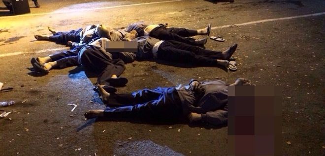 据了解,检察官已初步勘验6囚饮弹自尽的现场,发现6人躺在同一处水泥地土,其中5人头对头呈梅花状摆放,另一名爆头的囚犯单独放置一旁,现场满地鲜血,直到10点半左右,才被送上运尸车载往殯仪馆。