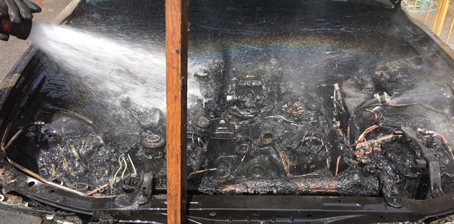 砂拉越南砂 车子引擎烧燬 2016年10月14日 引擎完全烧毁。 停着的车子疑电线短路着火焚烧,消防队赶抵及时扑熄,唯引擎已100巴仙烧毁,车身则仅轻微波及。Advertisement 此宗火警事故是于昨早10时许,发生在古晋马当再也第3巷,柏特拉再也消防员局安排消防队抵达现场灌救。