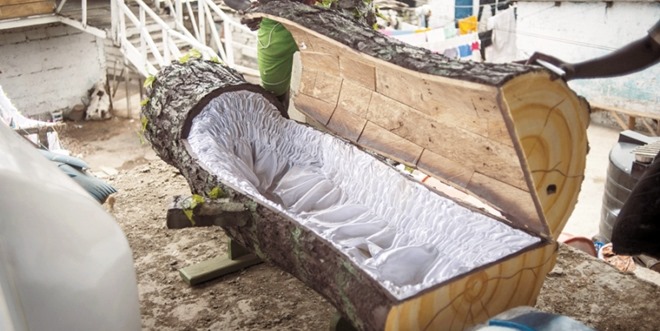 在加纳首都阿克拉(Accra)的丧礼上,你可以看见形状各异的棺材,有圆形木头、乳牛、相机、螃蟹、鱼类等等。这些棺材製作精良,有些甚至被送到世界各地作为艺术品展览。