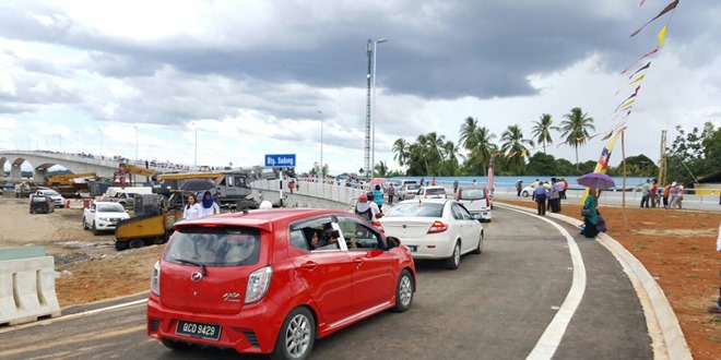 巴当砂隆大桥正式通车后,将惠及海口区如诗巫瑶和实文然的居民,缩短路程,不必绕远路。