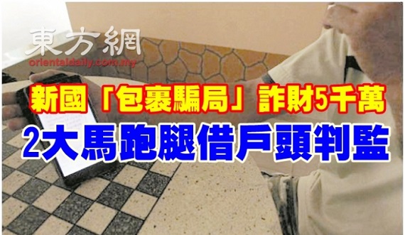 (新加坡19日讯)外国犯罪团伙在新加坡策划「包裹骗局」诈財,导致348人受骗,涉款超过1900万新元(5700万令吉),两名大马男子因负责把赃款提出后,再交给团伙的跑腿工作,今日被判罪名成,分別入狱20个月及18个月。