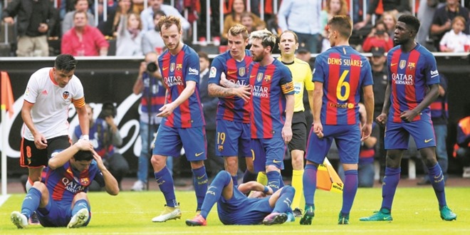 (马德里23日综合电)卫冕冠军巴塞罗那週六在西甲联赛第9轮,凭藉梅西在最后时刻罚入点球,客场以3比2险胜「蝙蝠」华伦西亚。「红蓝军」暂以1分优势超越少赛1轮的皇家马德里和马德里体育会,登上形势榜首位。