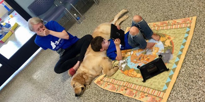 综合报导,面子书专页「4 Paws For Ability」日前贴出一段影片及照片並写下,照片中的男孩从小患有自闭症,因为生病的关係对於旁人的触碰会感到不舒服和排斥,不愿意让人帮忙洗澡、穿衣服、拥抱,但却愿意依靠在服务犬身上,在这个难以言语的时刻,他的母亲当下忍不住掩面痛哭,看著孩子无数次在操场无数次的试著交朋友,却是以失败告终,好几个的夜晚看著孩子放声哭泣,因为无论接受过多少次的治疗,他始终无法跟上外界的节奏。
