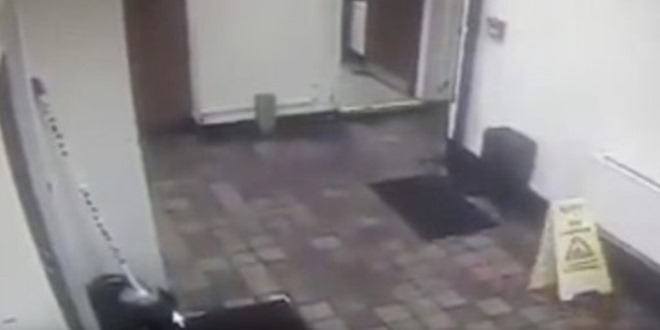 据《Daily Star》报导,31岁的酒吧负责人朗德(Katie Ann Round)当晚在打烊后开始打扫,当她转头进厨房后,走道旁的告示牌突然自己折叠起来,接着应声倒地。