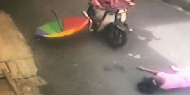 「当时,掠夺匪骑乘摩哆自受害者身后企图掠夺手提袋却失败,受害者因此身体失去重心而摔倒,结果掠夺匪竟然骑摩哆回头,辗过受害者头部后抢走对方的手提袋扬长而去。」
