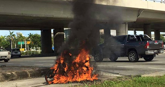 这起火烧电单车事故是今早九时,在甘拜园高架公路交通灯处发生,当时该燃烧的电单车恰好在火车轨旁。
