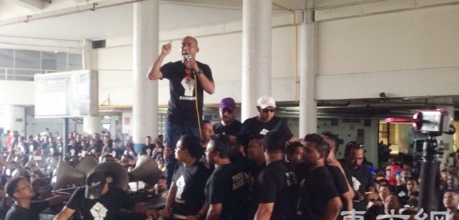 来自檳州各地,身穿印著青年崛起(Pemuda Bangkit)字眼黑色T恤的骑士们,今午1时许先把摩哆停放在中路巫统大厦,之后以步行方式,浩浩荡盪前往光大。从中路至光大约有10分钟步程。