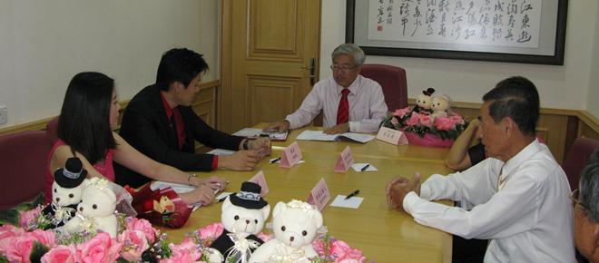 砂拉越北砂 7对新人情人节缔良缘 2015年2月14日 新人在婚姻注册官李春森及至亲的见证下签署一生誓约。 2月14日是浪漫甜蜜的情人节,美里中华工商总会迎来了7对新人缔结美满良缘。他们在至亲朋友的陪同下,选择在这充满浪漫气氛的一天缘订今生,在婚姻注册官李春森的见证下签下一生的承诺。Advertisement