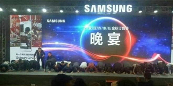 中国网民质疑:「为了让经销商多订货,三星逼使中国区管理层集体下跪?」又指责三星的企业文化是不是不把员工当人。