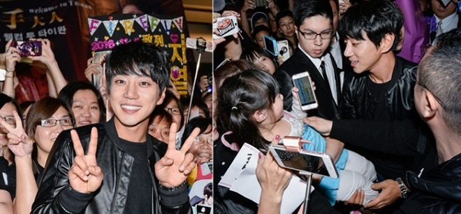 台湾歌迷迫不及待见到偶像,至少5百粉丝聚集在桃机第一航厦入境大厅,手举海报及旗帜要给偶像惊喜。黄致列入境时看见大批粉丝接机兴奋不已,立刻上前与粉丝拍照,还拿出手机贴近粉丝自拍,场面因此差点失控。