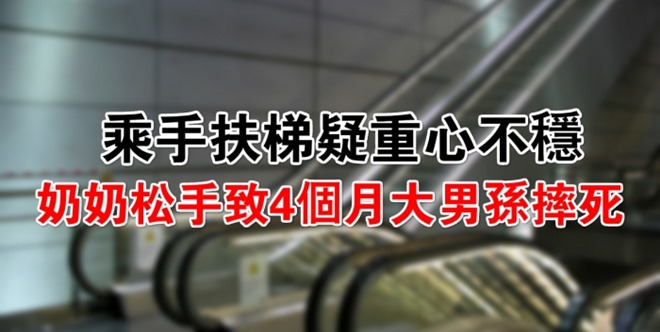 而从监视器画面可看见,当时这位老太太抱著4个月大的男婴,而男婴母亲则牵著一名年幼女童在后面跟上,没想到男婴的奶奶一踏上手扶梯后疑似重心不稳,整个人往右侧翻倒,抱在左手上的男婴则被被摔落手扶梯外,直接坠落地面。