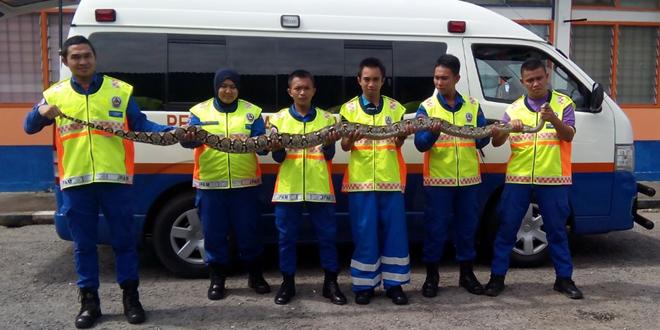 砂拉越南砂 藏住宅沟渠 大蟒蛇落网 2015年2月16日 12尺长的蟒蛇被押回民防局总部。 (本报古晋15日讯)沟里有大蟒蛇,居民拨电召来民防拯救员将具攻击性的蟒蛇手到擒来。Advertisement 1名居住在三马拉汉甘榜丹绒文东的巫裔阿兹宾马哈迪 ,在途经住家前的水沟时,惊见沟里有条动也不动的蟒蛇。 在担心蟒蛇会对小孩或家畜有威胁的情况下,屋主马上拨电向民防拯救局求助。当局则马上安排三马拉汉的民防局安排民拯员来到现场抓蛇。 民拯员出动专员成功将是条蟒蛇逮住,并在返回民拯局后经检查发现是条12尺长蟒蛇,暂时被收关在三马拉汉的蛇笼内,料在近日转交给森林局。