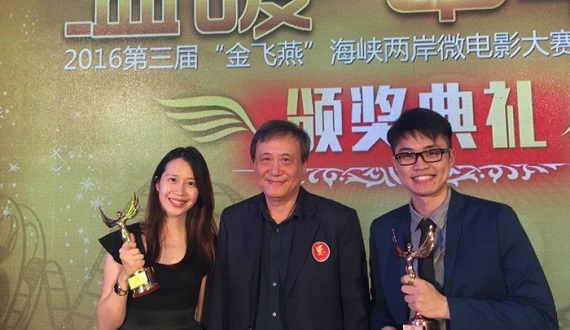 梁德辉早前把大马教育实况拍成毕业作品《第一志愿》,先后获得《台湾新北市学生影像新星奖》剧情类第2名,以及《日本东京第3届亚洲大学生电影节》评审团奖。这次他带著女主角张永锨和副导演林峻贤远赴中国武汉,再次带来好消息,作品荣获《2016第三届金飞燕海峡两岸微电影大赛暨高峰论坛》的「铜飞燕奖」,张永锨则获得「最佳女主角」。
