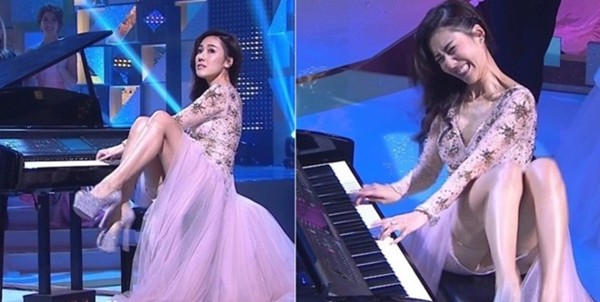 综合报导,继邓佩仪、张宝儿、陈睿雯、胡鸿钧等四人一琴合力弹奏后,李施嬅压轴现身独奏,琴技了得的李施嬅大玩花式表演,穿高衩礼服的她坐在椅子上,隨著音乐不断转身又不停踢腿,虽然不慎露出打底裤,但无损观感!加上夸张表情,令台下观眾及艺员们都惊呼连连!