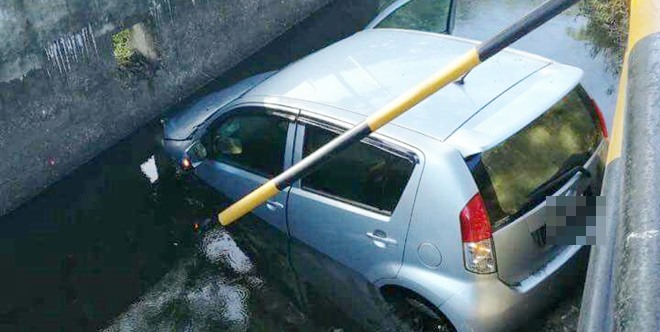 砂拉越中砂 失控冲断铁栏杆 车撞落沟司机受惊 2016年11月20日 (本报诗巫20日讯)司机疑没有注意是驾驶排挡,结果踩了油门,车子猛力往前撞断铁栏杆,掉下大水沟。Advertisement 是宗有惊无险的意外于今早11时许发生在巴拉路近周钖萱路的商店前的停车位,当时司机疑一时走神,以致没有注意到已换了驾驶排挡,所以在踩了油门后,车子往前直冲,撞断了铁栏杆,掉入大水沟。 司机是名50余岁的妇女,她今早带着孙女去周日市集买菜后,并吃了早餐,欲回家时发生意外。 所幸水沟内的水位不深,受惊吓的司机与孙女爬出车子,并在他人的协助下,拉上路旁。