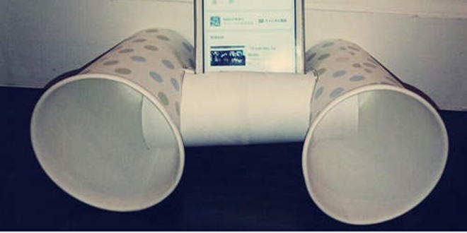 最近很流行的手机喇叭扩音器,动辄一个就要上百令吉,而这个纸杯喇叭只需要两个纸杯和一个卫生纸滚筒就可以制成,卫生纸卷筒当成基座,两个纸杯置于两旁当作扩音器,简简单单就完成了!