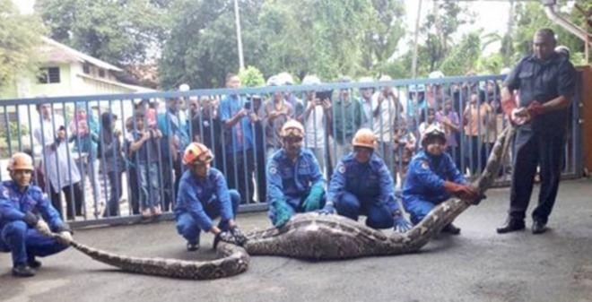 据《海峡时报》报导,当地民防部队捕捉一条长达6米、重达100公斤的蟒蛇。