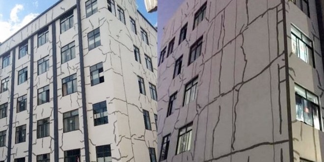 云南昆明市林业职业技术学院宿舍大楼出现大面积的裂纹,修补后墙面留下如「绷带状」的痕迹,引发学生的恐慌,有人拍下照片上传,在网路上引起热烈讨论。对此,学校也称宿舍大楼属钢筋结构,外墙容易出现裂痕,而且内部已经派专人检查过「一切正常」,要学生们不用太担心。