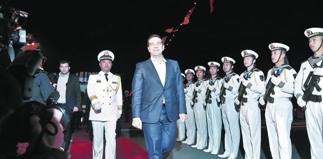 齐普拉斯在参观中国军舰时说:「我们特別重视中国在希腊现有的投资,包括中远集团在比雷埃夫斯港的重要的经营活动。」