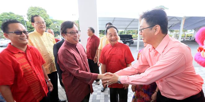 是项活动开始前﹐纷纷身着唐装或带有喜庆颜色服装的联民党党主席拿督斯里黄顺舸﹑联民党署理主席拿督耶理苏修﹑联民党顾问天猛公刘金荣﹑联民党顾问周启明﹑联民党副主席刘恭敢等一众领袖﹐就亲切地和与会人士相互握手拜年。