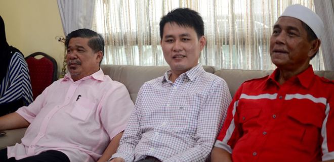 美里伊斯兰党主席哈志佐菲里,今天特通过电邮传给各语文报章党要于年初二向行动党林思健和林素均及美里公正党青年团团长张佳骏贺年的照片。