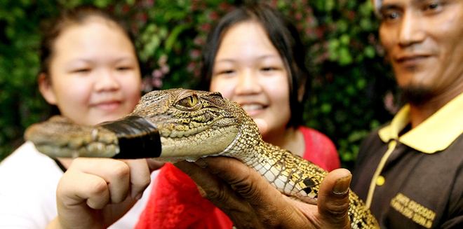 砂拉越南砂 摸摸鳄鱼 2015年2月23日 两姐妹有机会触摸这只两岁大的小鳄鱼。 在华人农历新年期间,位于晋连路的杨氏鳄鱼场吸引大批游客到来参观。Advertisement 杨氏鳄鱼场的员工正抓着一只小鳄鱼,让参观者近距离接触。 一名小女生勇敢地将小鳄鱼捧在手中。