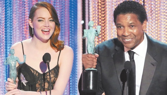 (洛杉磯30日讯)《第23届美国演员工会奖颁奖典礼》圆满落幕,艾玛斯通(Emma Stone)凭《乐来越爱你》(LaLa Land)获得第三座影后奖。62岁的丹佐华盛顿(Denzel Washington)则爆冷首次成为演员工会奖影帝。