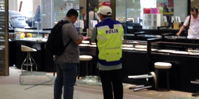 (吉隆坡18日讯) 4名劫匪今午闯入大城堡恩达广场的一间金钻行內行劫,短短3分钟扫走至少3桌金饰!