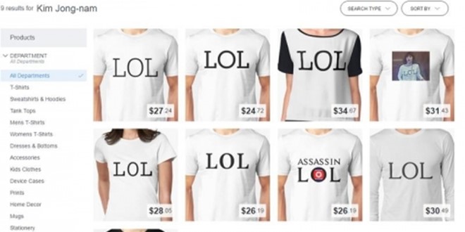 朝鲜领导人金正恩同父异母哥哥金正男遭暗杀,美国1名设计师表示,他打算贩卖类似女嫌身上所穿、印有「LOL」的T恤,好趁机捞一笔。