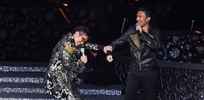 (香港25日讯)谭咏麟为纪念入行40周年,于红馆举行共13场演唱会,日前第11场请到谢霆锋上场,选唱《爱的逃兵》,被阿伦取笑是否有特別意思。