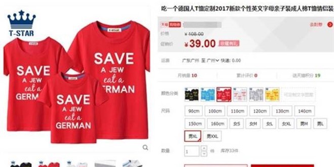为了反击,淘宝网竟出现了「吃德国人救犹太人」的衣服。
