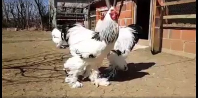 脸书粉丝专页「The Press of World」之前po了一部影片,影片开始不久后,出现一只比平常看到还大的「巨无霸鸡」从鸡舍缓缓走出来,然后雄赳赳气昂昂地到处逛大街;上周他们再度上传「巨无霸鸡」的新影片,只见几只鸡在鸡舍闲晃,甚至还有只鸡「从天而降」,画面惊人。