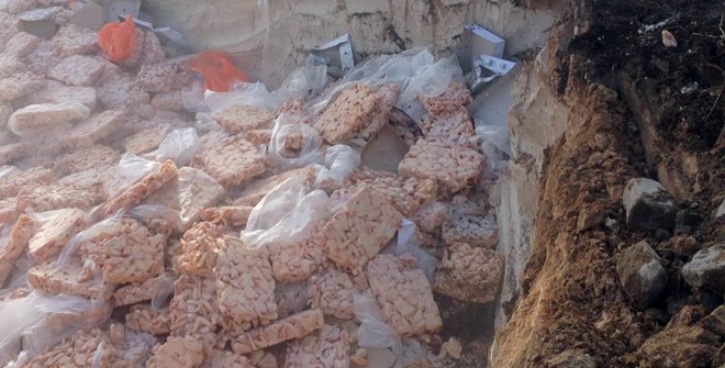大批来历不明的冷冻鸡翅膀相信于上周被埋在石山路通往兰岛邦章处(Jalan Quarry)的一空地,但到底是何人或单位将这些鸡翅膀埋在该处的泥土,是基于什么原因将这些鸡翅膀销毁,就不得而知了。