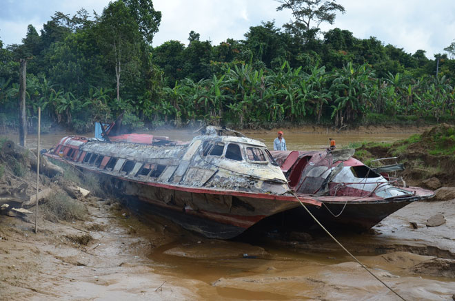 (本报诗巫27日讯)用氧气乙炔切割工具切割废置快艇时,却不料火花掉落船仓的座位上,引发火患的发生。