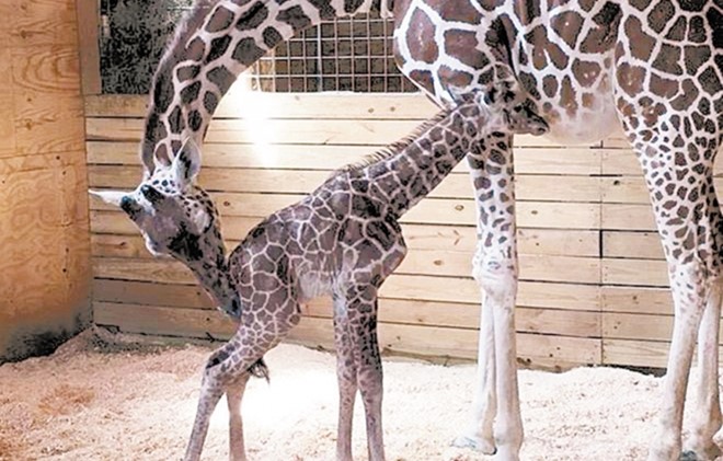 (纽约16日讯)较早遭动保人士抗议影片含「裸露与色情」而导致下架的长颈鹿生宝宝直播一事。就在上千万网民等待一个多月后,一只名为「四月」(April)的母长颈鹿,周六终於產下了幼崽。